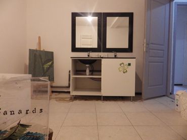 Salle bain équipée d'une douche. Cuisine aménagée. Produits d'hygiène non fournie.